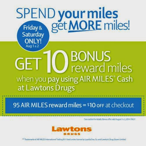 Lawtons: Friday & Saturday: get 10 bonus Airmiles when you pay with Airmiles Cash (95 miles = $10)
